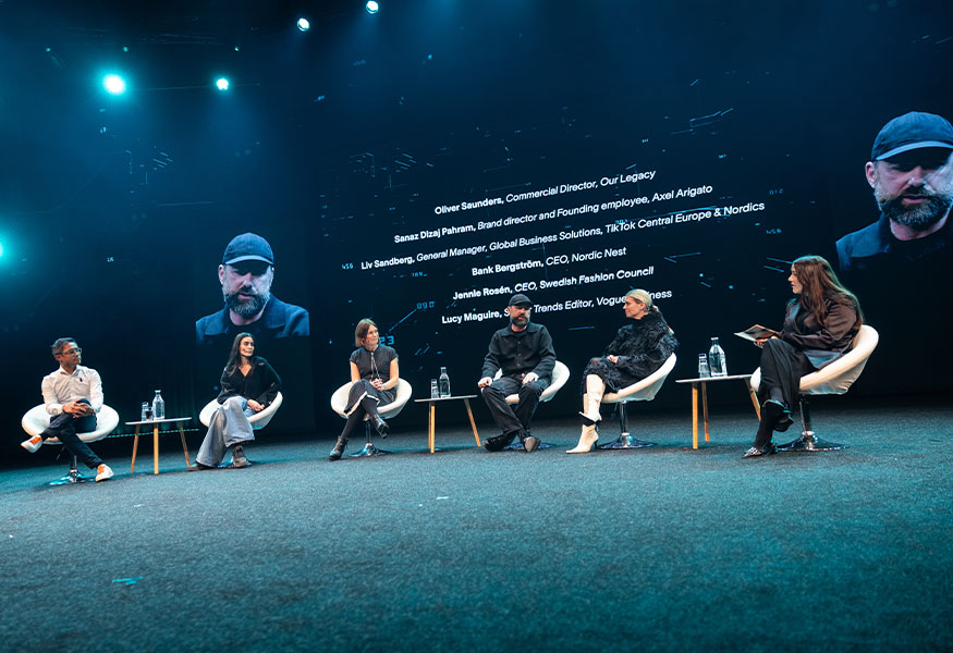 Lucy Maguire lead a dynamic discussion at D-Congress 2024 with Oliver Saunders (Our Legacy), Sanaz Dizaj Pahram (Axel Arigato), Liv Sandberg (TikTok), Jennie Rosén (Swedish Fashion Council) and Bank Bergström (Nordic Nest).