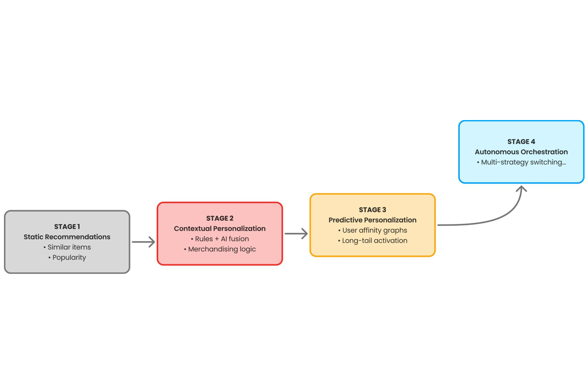 Stage 1 strategies (similarity, popularity, basic cross-sell) can be incredibly effective early on. They capture high-intent, obvious behavior really well. But they tap out around 60-120 days because they’re reactive, not predictive. They show what people already want, not what they might want.